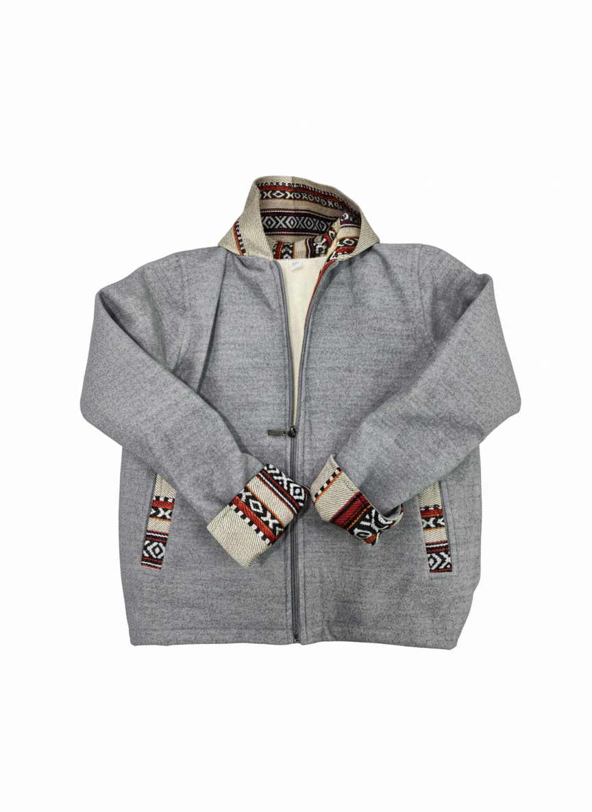 Keep your little one warm and stylish with our New Syrian Boys’ Jacket. This piece is more than just outerwear; it is a beautiful fusion of cultural heritage and contemporary comfort. Crafted in a versatile heather grey, this jacket features a plush, cream-colored interior lining that ensures maximum warmth during the colder months.